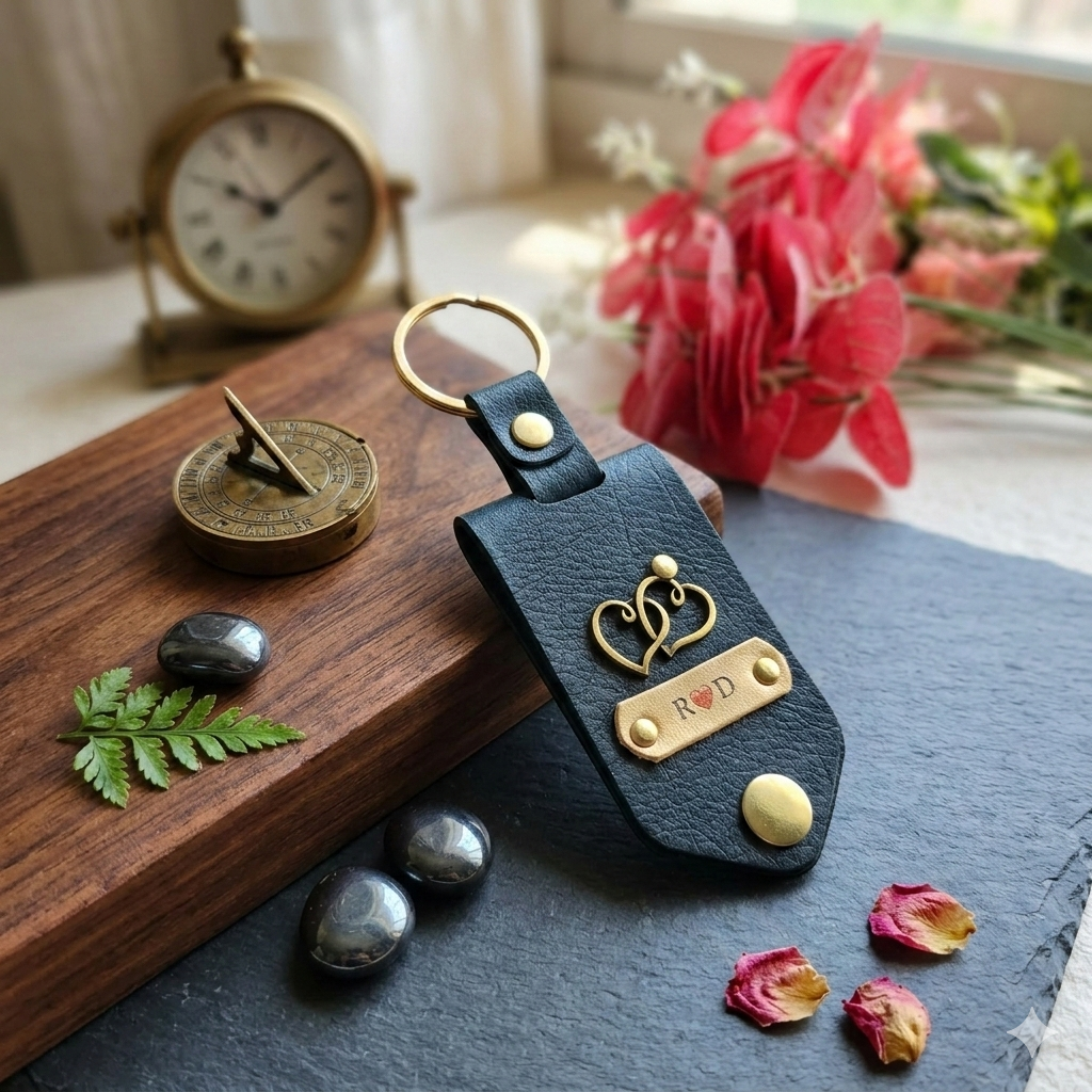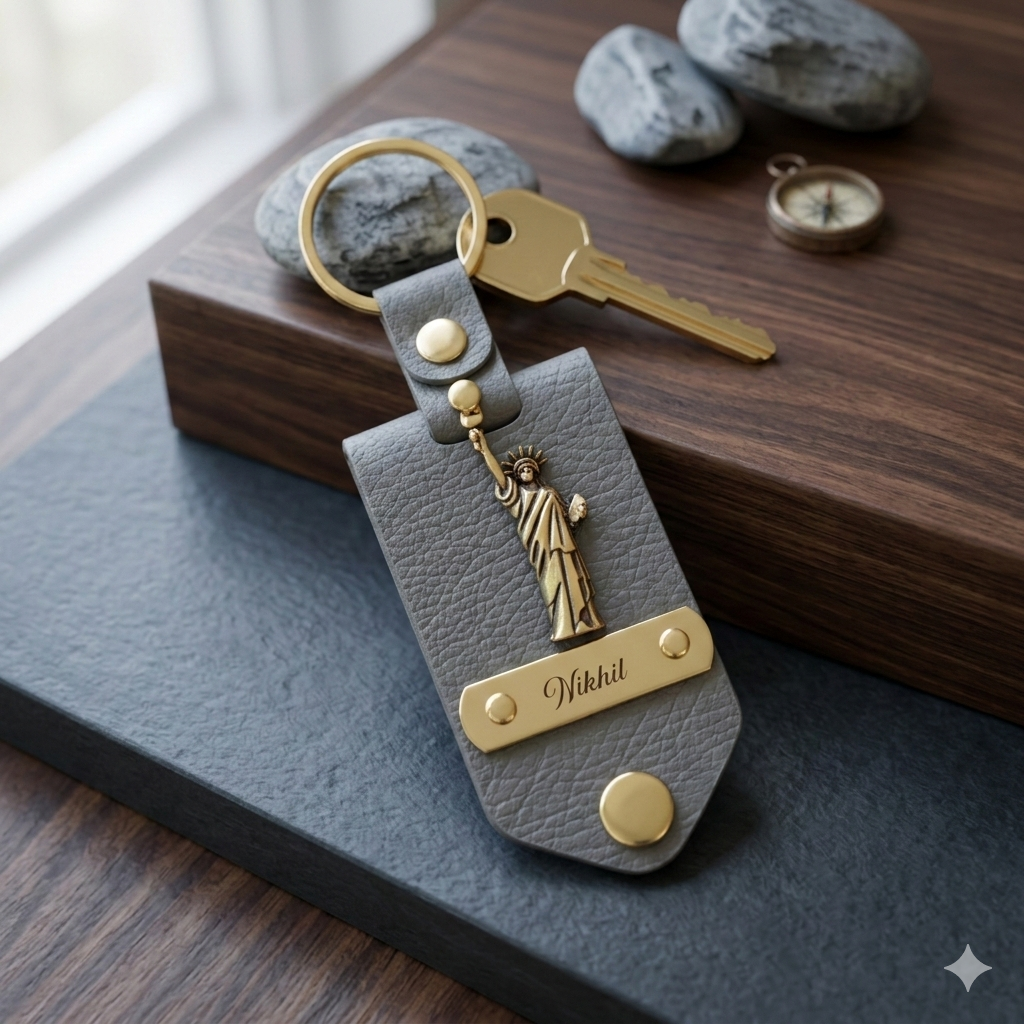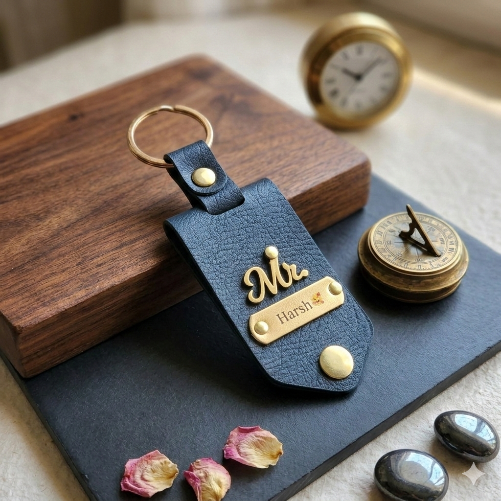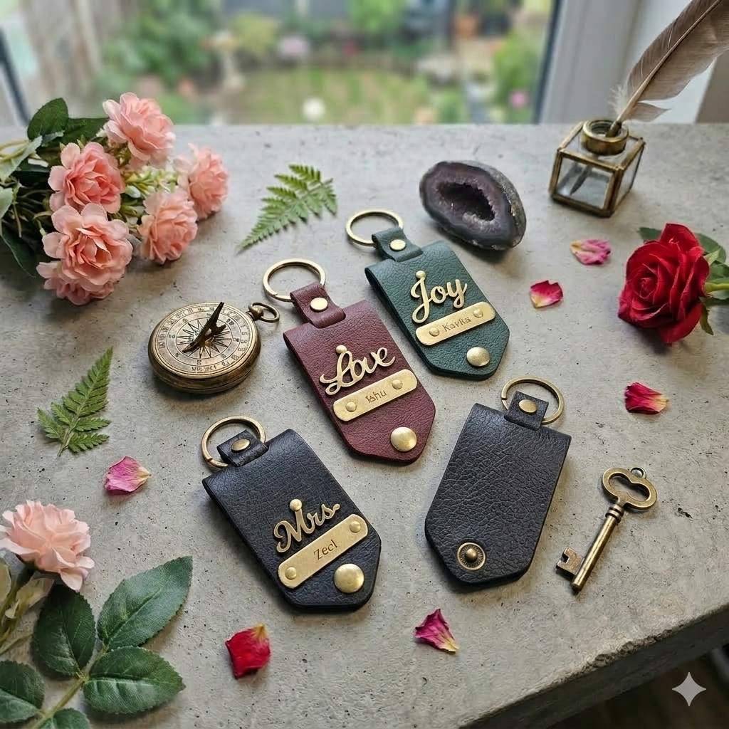 PERSONALISED DESIGN: Features a custom name plate and charm on a rich brown leather tag, making every keychain uniquely yours.