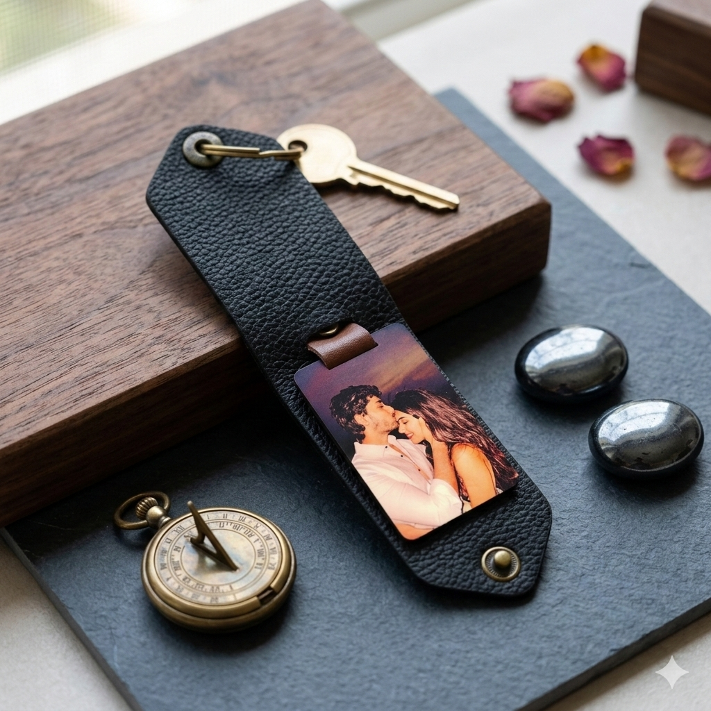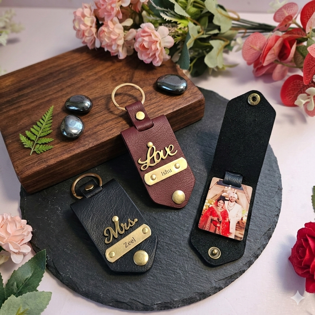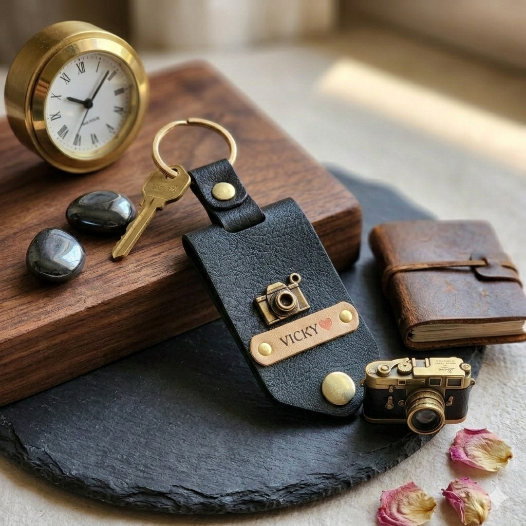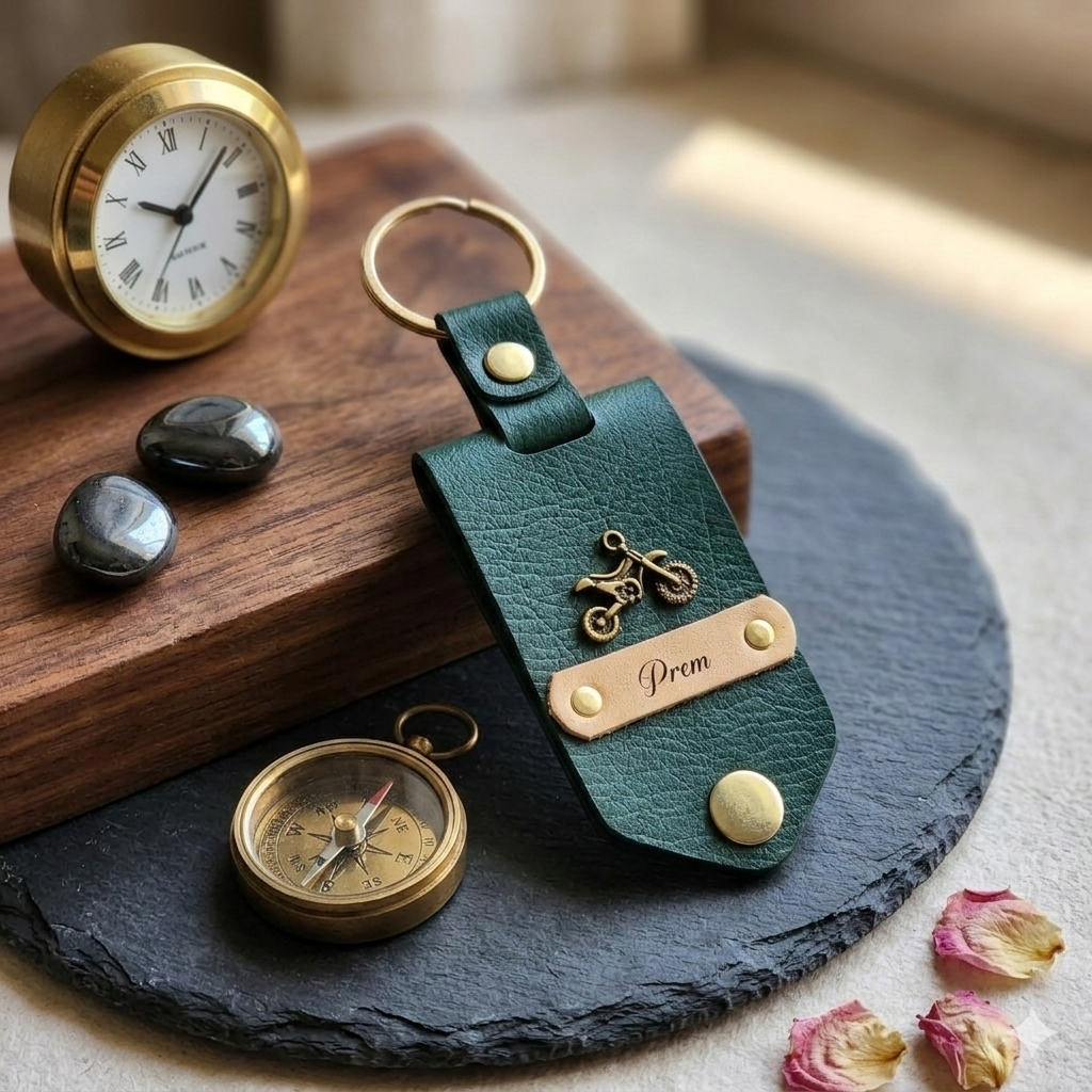 PERSONALISED DESIGN: Features a custom name plate and charm on a rich brown leather tag, making every keychain uniquely yours.