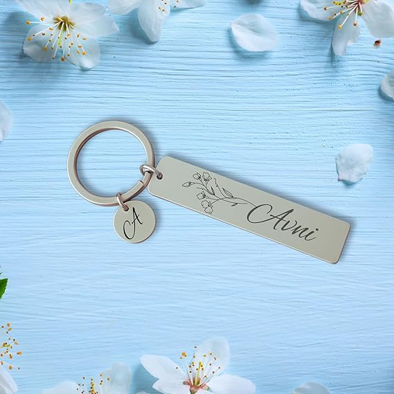 Personalized with a birth month flower and name, making each keychain a unique and meaningful keepsake